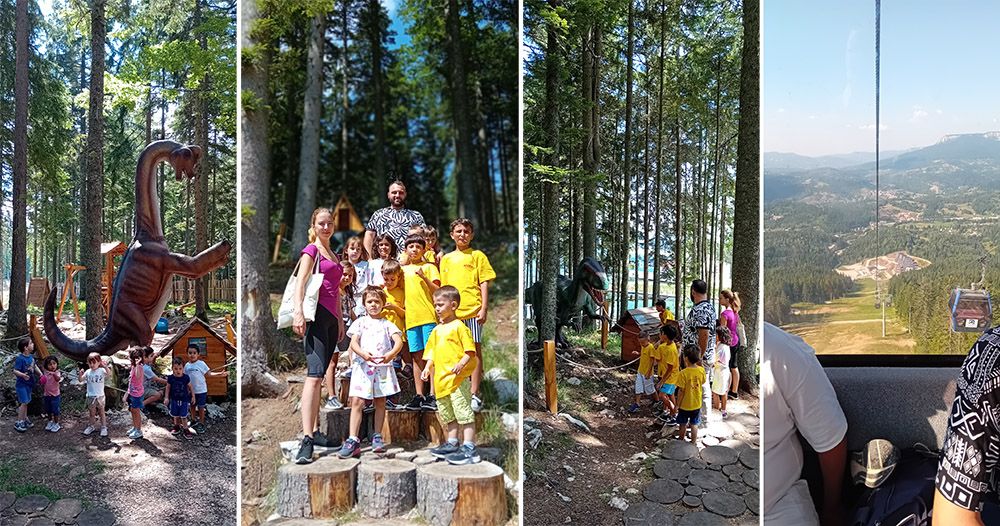 Ravna Planina is already a well-known and beloved place for them, as they also enjoyed wonderful moments there last year. This year, the kind hosts once again opened their doors and hearts, giving the children the chance to enjoy a gondola ride, swimming in the artificial lake, and the attractions of Dino Park.