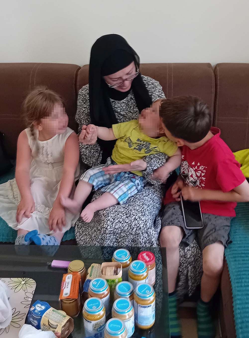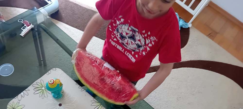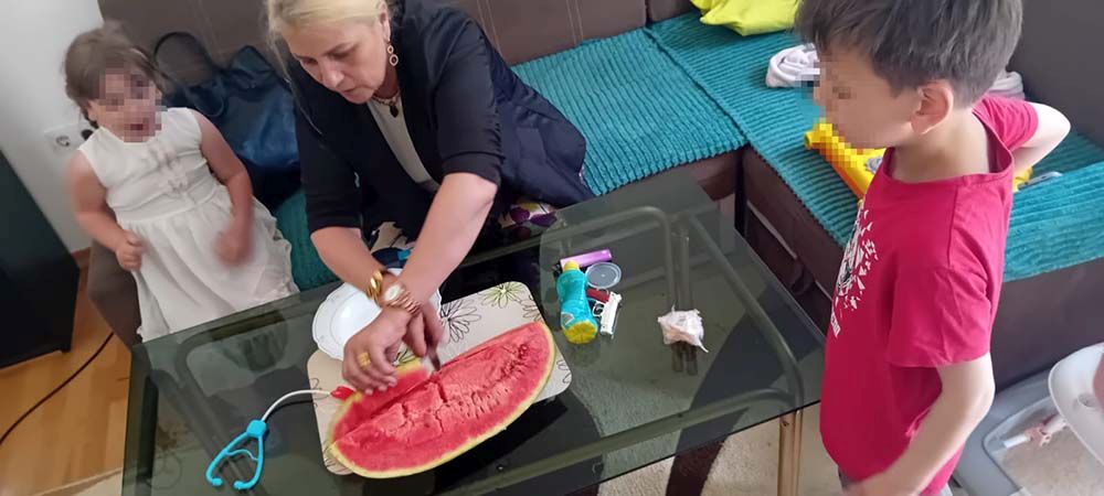 The mother was especially happy to receive honey, which her youngest child needs, while the little ones were overjoyed with the watermelon they tasted for the first time this year.